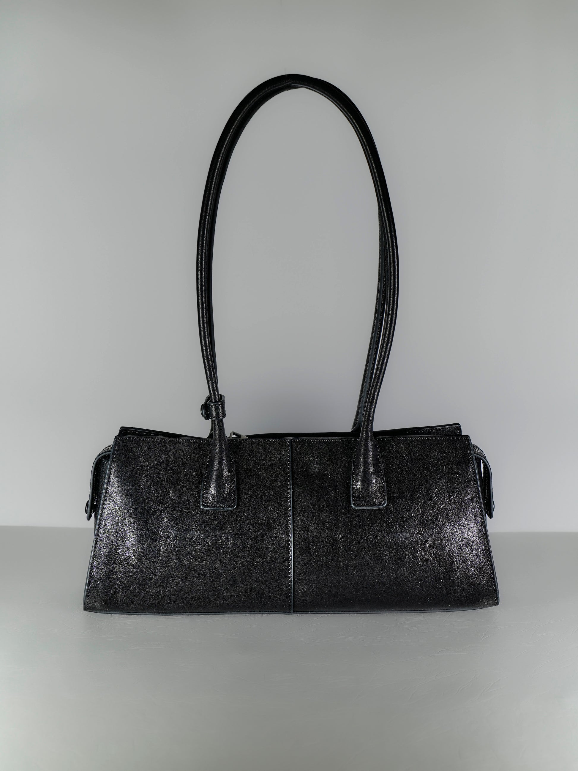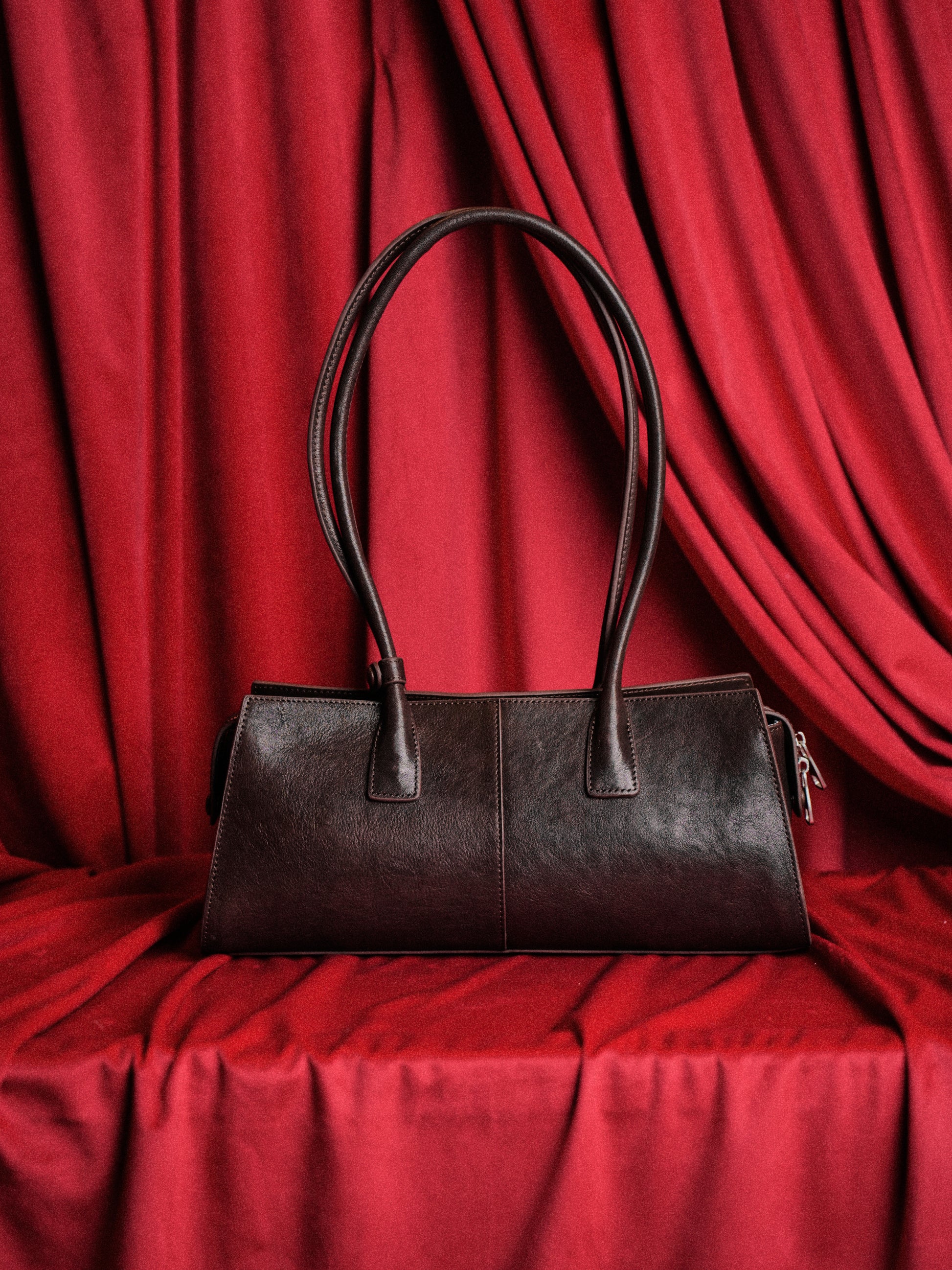 Bag type: tote bag Wearing method: on the shoulder, on the arm, in the hand Upper material: genuine leather Fastener: zipper Pockets: 2 pockets inside: 1 open, 1 with a lock Shoulder strap: no Package: dust bag for storage Depth: 12.0 cm Width: 33.0 cm Height: 16.0 cm